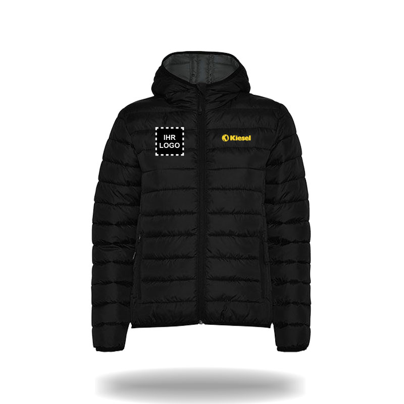 - Tasche zum Verstauen der Jacke. Leichtes und faltbares Kleidungsstück. Tailliertes Modell.
